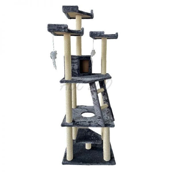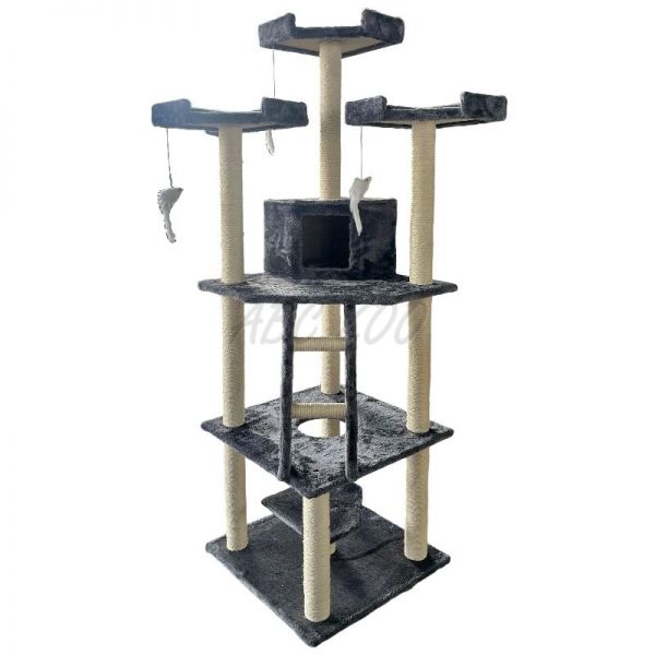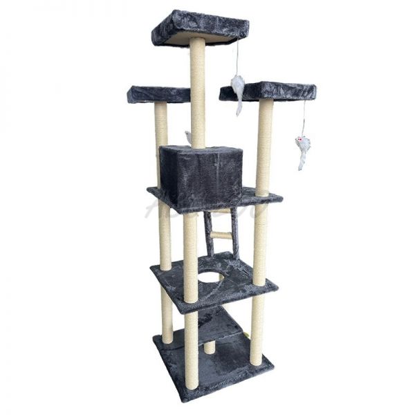 Toto vysoké a stabilní škrabadlo je ideální pro domácnosti s jednou nebo více kočkami, které potřebují prostor pro aktivní trávení času i klidné útočiště. Nabízí kombinaci různých prvků, jako jsou vyhlídky, domeček, žebřík a hračky, čímž poskytuje kočce maximální pohodlí a zábavu. Sisalové sloupky podporují přirozený instinkt koček na škrábání, čímž chrání váš nábytek před poškozením.