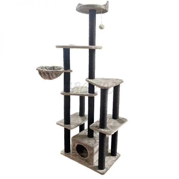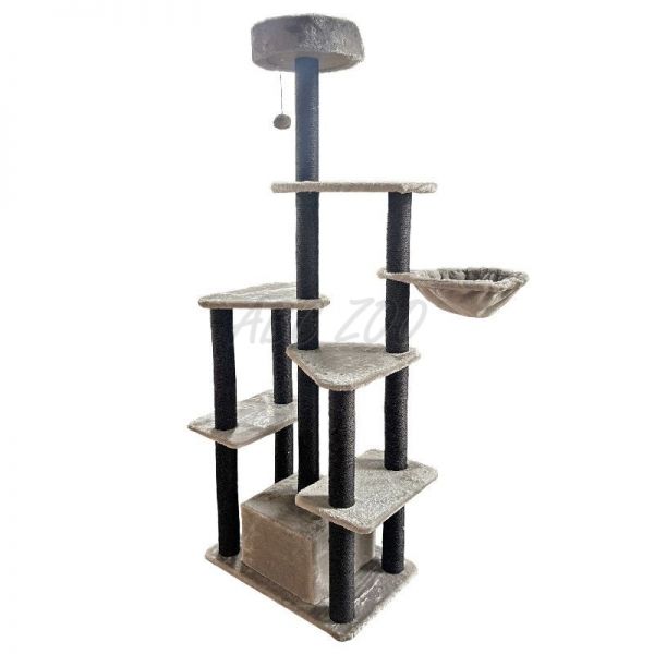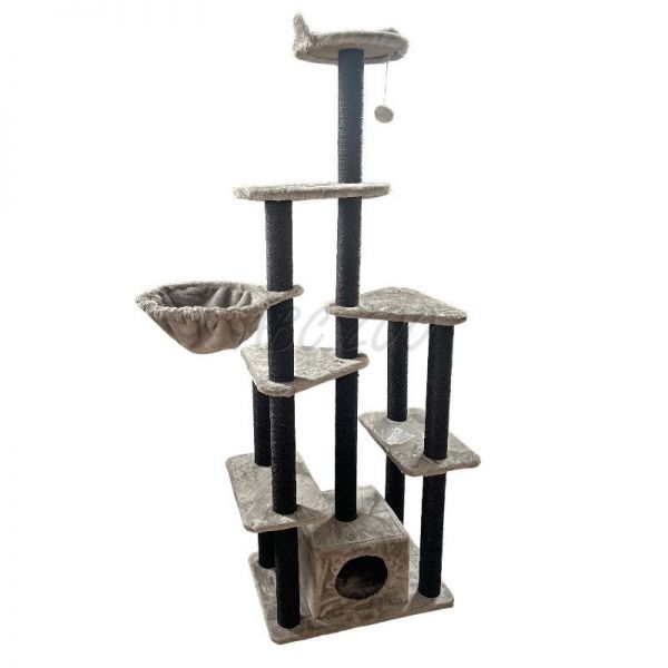 Toto vysoké a stabilní škrabadlo je ideální pro domácnosti s jednou nebo více kočkami, které potřebují prostor pro aktivní trávení času i klidné útočiště. Nabízí kombinaci různých prvků, jako jsou vyhlídky, domeček, plošiny a hračky, čímž poskytuje kočce maximální pohodlí a zábavu. Sisalové sloupky podporují přirozený instinkt koček na škrábání, čímž chrání váš nábytek před poškozením.