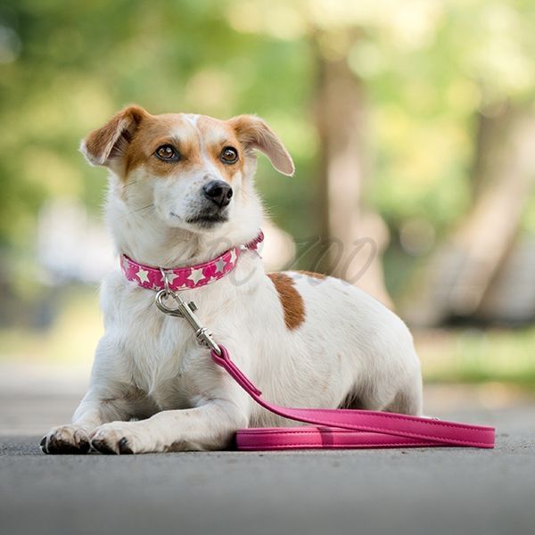 Kožený obojek je jedinečný tím, že obsahuje kombinaci reflexních a ve tmě svítících – fosforeskujících hvězdiček. Je šitý z dvojité vrstvy kůže.Obvod krku: 38 - 49 cmŠířka: 25 mm