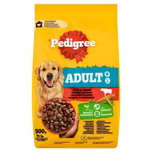 Složení: obiloviny*, maso a výrobky živočišného původu (včetně hovězího 4 %), oleje a tuky, výrobky rostlinného původu (včetně sušené řepné dřeně 3%*), minerální látky, zelenina* (včetně směsi sušeného hrášku a mrkve 0,7 %, ekvivalent směsi hrášku a mrkve 4 %), kvasnice (včetně pivovarských kvasnic 0,4 %)