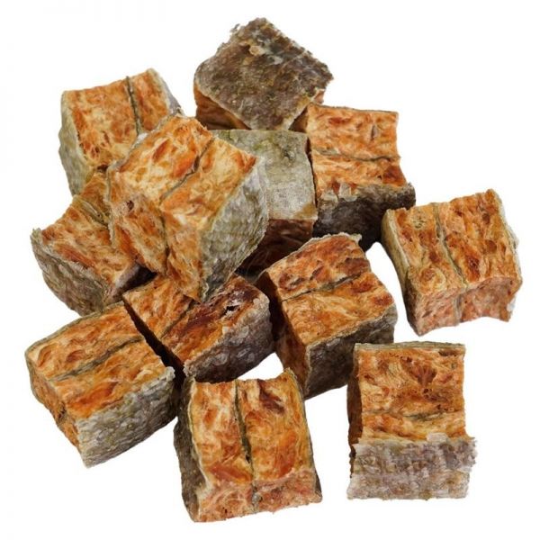 Složení: losos 85 %, kůže z bílé ryby 6 %, rostlinný protein, škrob, glycerin
