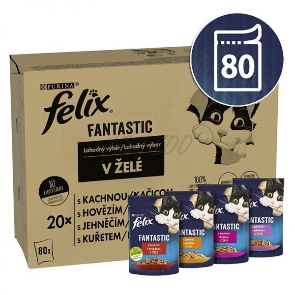 Kapsičky FELIX Fantastic Multipack - s hovězím, kuřetem, kachnou a jehněčím v želé 80 x 85 g