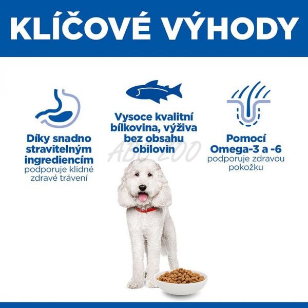 Suché krmivo pro dospělé psy s lososem pro psy s citlivou pokožkou a žaludkem. Více detailů