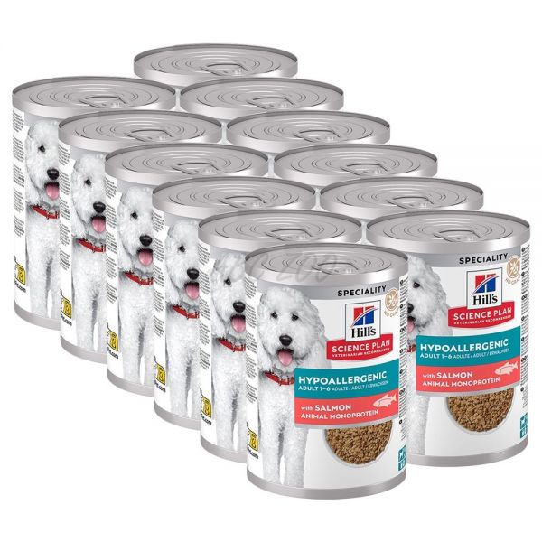 Hill's Science Plan Hypoallergenic konzerva pro dospělé psy s lososem 12 x 363 g