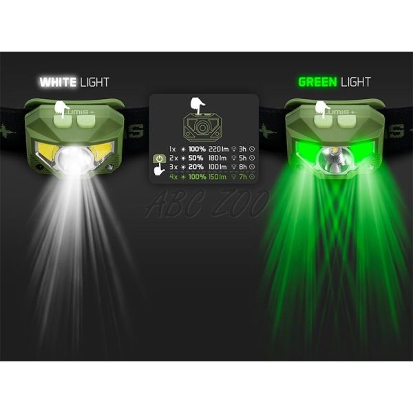 Čelovka s výkonem 3 W a svítivostí 220 lm, vybavená dvěma LED diodami, které umožňují přepínání mezi klasickým bílým a zeleným světlem. Více detailů