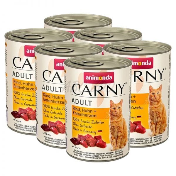 Animonda Carny Adult hovězí, kuřecí maso + kachní srdce - 6 x 400g