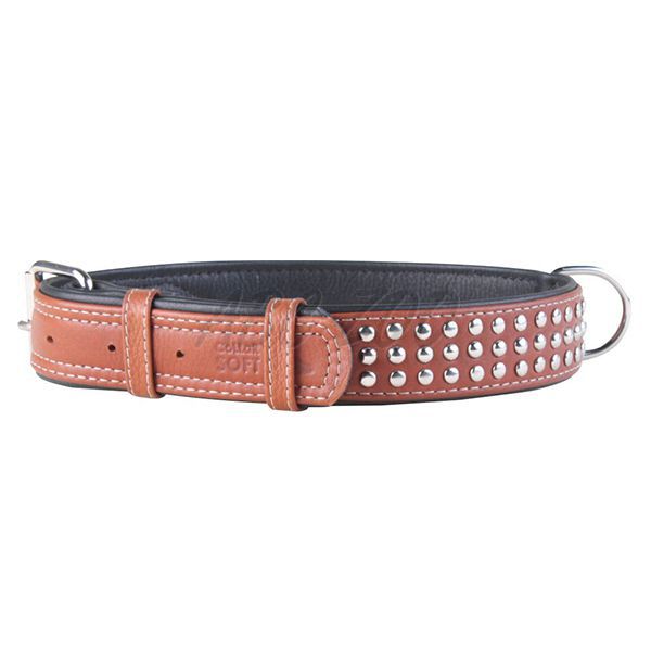 Ručně šitý, polstrovaný a elegantní obojek s kovovou aplikací. Vyroben z vysoce kvalitní kůže.
