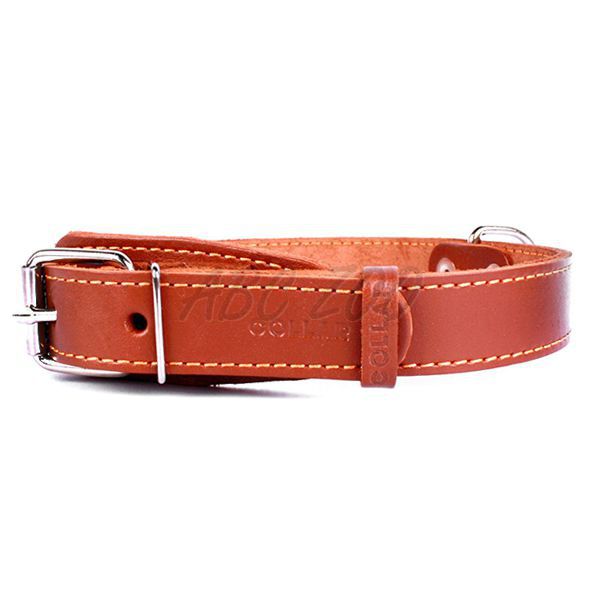 Hnědý kožený obojek podšitý jemnou podšívkou. Více detailů