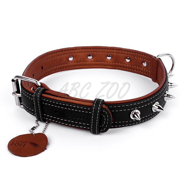 Vysoce kvalitní černohnědý dvouvrstvý kožený obojek s kovovými ostny pro psa. Více detailů