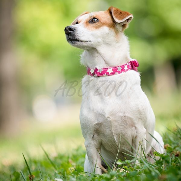 Svítící kožený obojek s hvězdičkami, růžový 27 - 36 cm, 15 mm