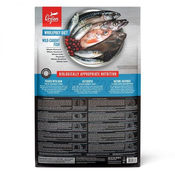 Biologicky vhodné krmivo složené z čerstvých místních surovin, obsahuje šest druhů volně lovených kanadských ryb. Krmivo Orijen se vyznačuje 38% podílem biologicky vhodných proteinů, díky čemuž se přibližuje přirozené stravě Vašeho psa. Psi jako masožravci jsou přizpůsobeni stravě, která je založena na bohatém a rozmanitém obsahu celého čerstvého masa, s menším množstvím ovoce, bobulovin a trav.