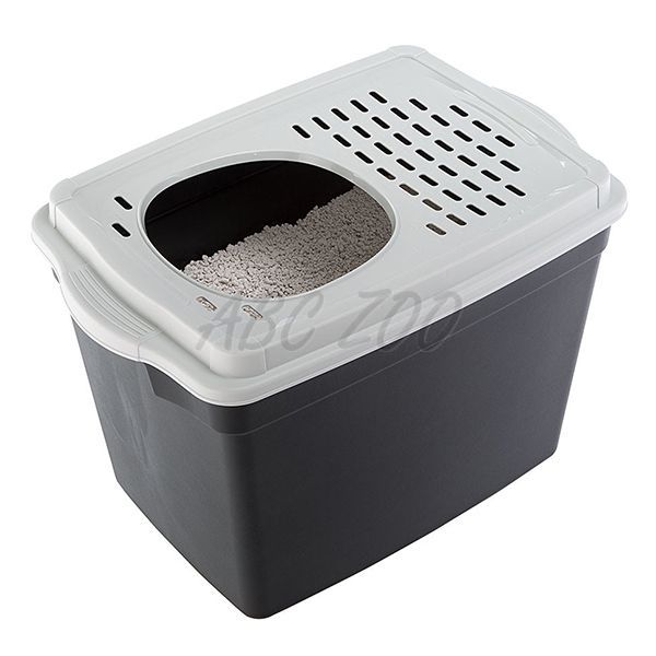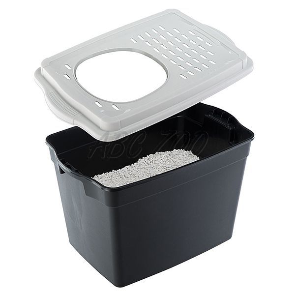 Plastová toaleta pro kočky se vstupním otvorem na vrchu toalety, černošedá. Více detailů
