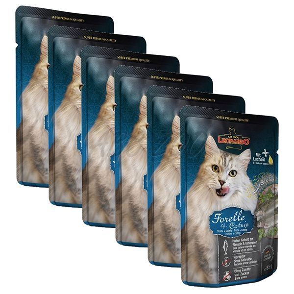 Kapsička Leonardo pstruh a šanta kočičí 6 x 85 g