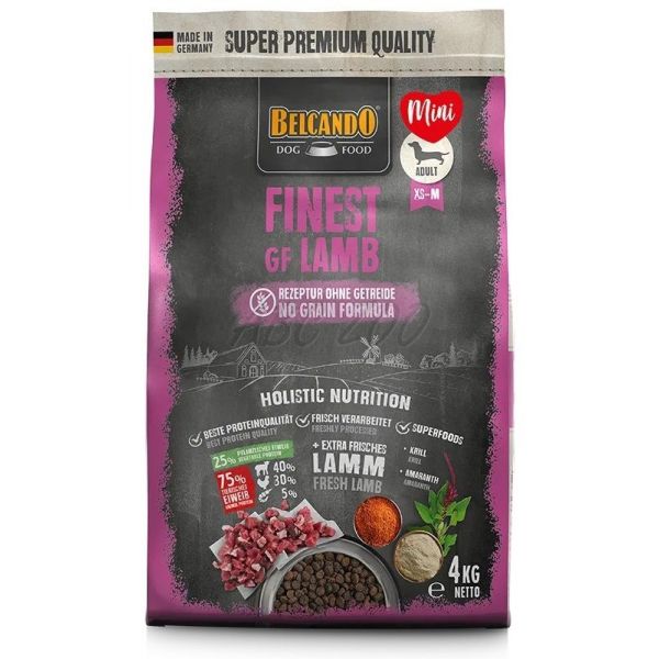 Složení: čerstvé jehněčí 40 % (maso, játra, plíce), amarant 16,5 %, bramborový škrob, jehněčí protein 10 %, drůbeží protein se sníženým obsahem popela, hrachová moučka, hydrolyzovaná drůbeží játra, mletý kryl 2,5 %, sušené pivovarské kvasnice 2,5 %, výlisky z hroznových jadérek, sušený svatojánský chléb, sušené plátky řepné dužiny zbavené cukru, Chia semínka, lososový olej, chlorid sodný, chlorid draselný, sušené byliny 0,2 % (listy kopřivy, kořen hořce, zeměžluč, heřmánek, fenykl, kmín, jmelí, řebříček, listy ostružiny), Yucca schidigera.