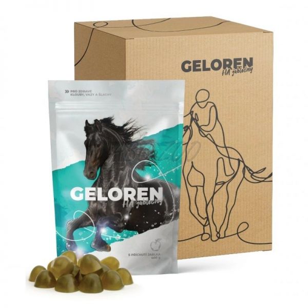 Geloren HA žvýkací gelové tablety s jablečnou příchutí pro koně trpící pohybovými obtížemi. Více detailů