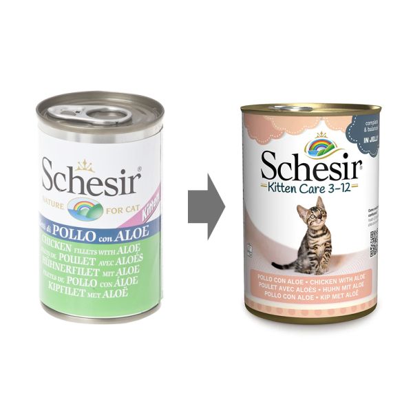 Schesir konzerva pro koťata s kuřetem a aloe vera v želé. Více detailů