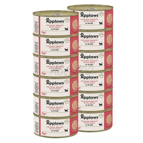 Applaws Konzerva pro kočky s kuřecími prsy a kachnou ve vývaru 12 x 70 g