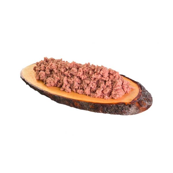 Složení: 85 % maso a orgány (59 % krocan, 26 % kapr), 9 % vývar, 4 % černá mrkev, 1 % minerály, 1 % lněný olej.