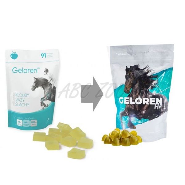 Geloren HA žvýkací gelové tablety s jablečnou příchutí pro koně trpící pohybovými obtížemi. Více detailů