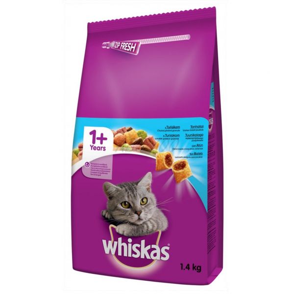 Složení: cereálie, maso a produkty živočišného původu, ryby a vedlejší produkty z ryb (včetně 4 % tuňáka ve světle hnědých granulích), oleje a tuky, rostlinné bílkovinné extrakty, produkty rostlinného původu, minerální látky, zelenina (4 % mrkve v oranžových kouscích, 4 % hrách v zelených kouscích).