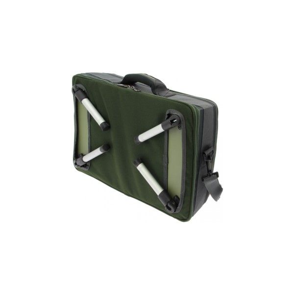 Velice povedený, kvalitně zpracovaný kufřík s integrovaným stolkem. Stolek lze z kufříku vyjmout, tím získáte klasický stolek do bivaku a kufřík na vše nezbytné. Velmi robustní zpracování a kvalitní zipy. Už nikdy nebudete hledat potřebné vybavení všude po bivaku. Vše je přehledné a na jednom místě. Má vydatné polstrování jak uvnitř kufru, tak na poutku a popruhu přes rameno. Spousta možností jak vnitřek kufříku individuálně upravit a nastavit. Ideální na delší výpravy pro kapraře do bivaku.