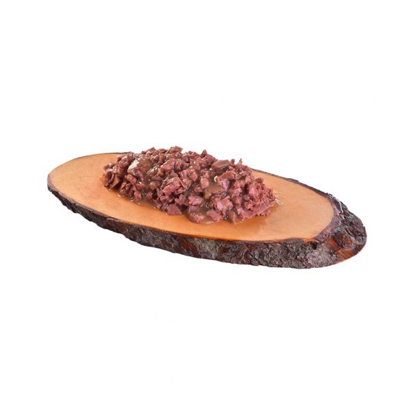 Složení: 85 % maso ve filetech (71 % kuře, 14 % králík), 12 % vývar, 1 % měsíček, 0,5 % minerály, 1 % lněný olej, 0,5 % zeleninový škrob.