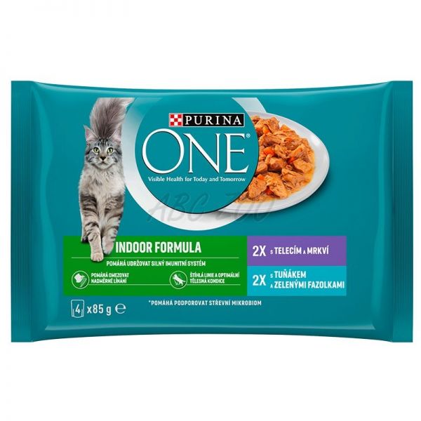 Purina ONE Indoor kapsičky pro kočky tuňák, telecí ve šťávě 4x85 g