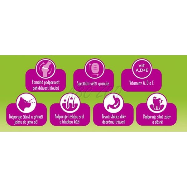 - Podporuje lesklou srst a zdravou kůži