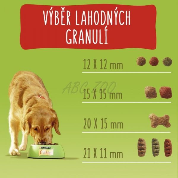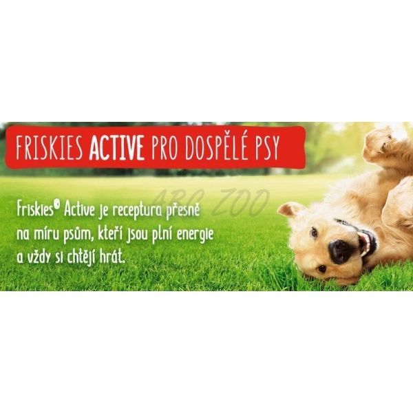 PURINA FRISKIES VITAFIT Active, chutnou recepturu s hovězím, v kombinaci s celozrnnými obilovinami, vitamíny skupiny B a omega-3 a 6 mastnými kyselinami pro psy, kteří jsou plní energie a chtějí si vždy hrát.