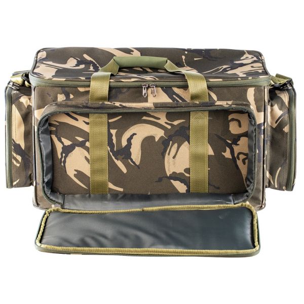 Taška pro přepravu všech věcí k vodě. Hlavní komora s víkem na zip. 3 vnější kapsy na zip. Ucha pro přenášení. Pevná tkanina a silné zipy X-Strong společně s masivním polstrováním. Kamufláž DPM.
