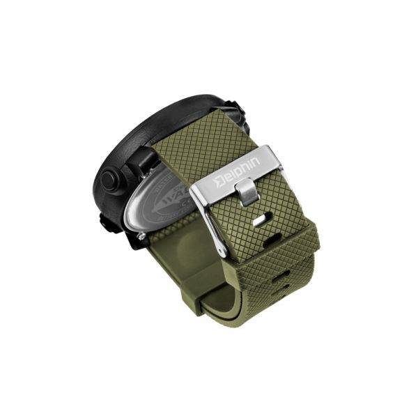 Delphin WADER jsou digitální hodinky pro každého, kdo chce mít svůj čas vždy pod kontrolou. Svým sportovním designem se ideálně hodí aktivním lidem, ať už jde o rybáře, myslivce, turisty či sportovce. Kromě běžné indikace času disponují několika skvělými funkcemi jako budík, stopky, volitelný 12 a 24H formát či duální čas. Také je možné pomocí tlačítka Light podsvícení LCD displeje, díky čemuž neztratíte pojem o čase ani během nočního rybolovu, či jiných aktivit. Gumová řemínka jsou na dotek velmi příjemné a také jsou délkově nastavitelné v široké škále. To zaručuje, že sednou na zápěstí o jakékoliv tloušťce. Řemínky jsou navržena v tmavě zelené barvě čímž ideálně zapadnou do přírodního prostředí, aniž by byly rušivým elementem. Samotné hodinky jsou vyrobeny z velmi pevného černého materiálu, který se vyznačuje excelentní odolností vůči mechanickému poškození. Podle mezinárodní stupnice je tento model označen jako voděodolný do 50m. Toto označení splňuje všechny náležitosti hodinek, které mohou být vystaveny tekoucí vodě (například sprchování) či pózování s úlovkem ve vodě, kdy absolutně nevadí jejich ponořování pod vodní hladinu i na delší dobu. Delphin WADER jsou jednoduše ideální stylový doplněk s nadupanými funkcemi, díky kterému budete mít vždy dokonalý přehled o čase.