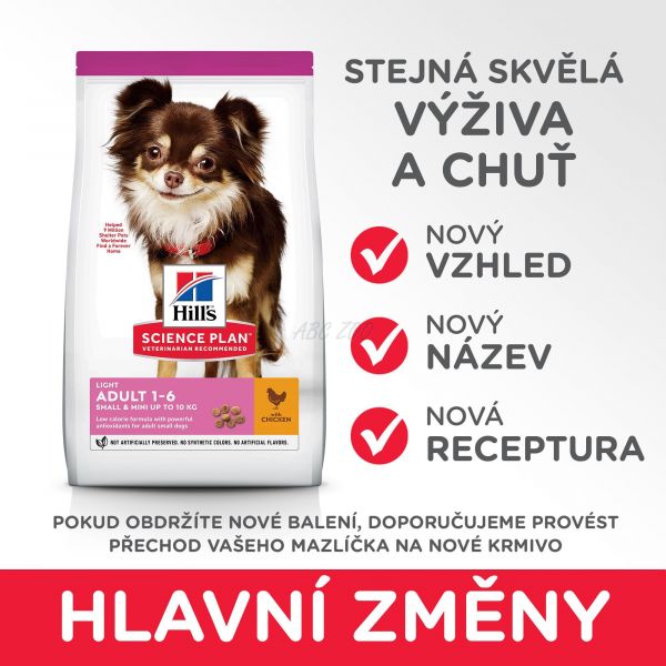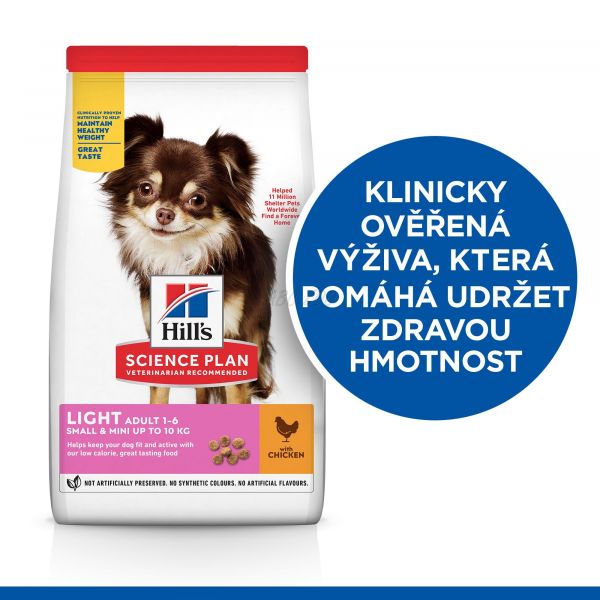 Hill's Science Plan Light Small & Mini krmivo pro dospělé psy s kuřetem. Více detailů