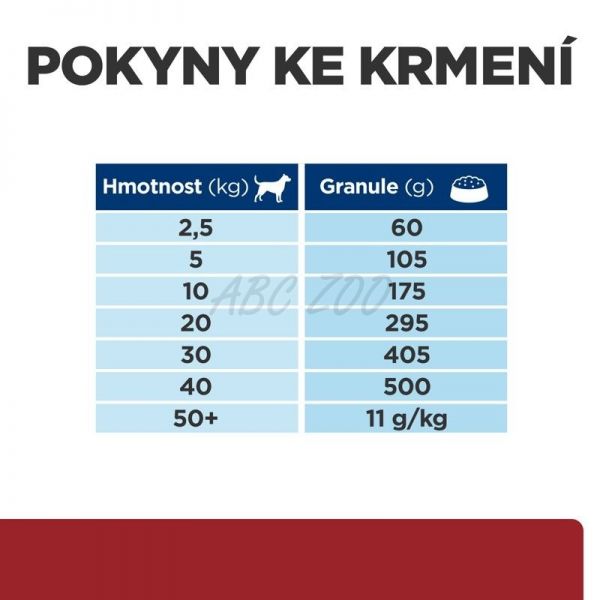 Před použitím požádejte svého veterináře o konkrétní pokyny ke krmení vašeho domácího mazlíčka. Kompletní pokyny ke krmení najdete v balení. Denní doporučení krmení jsou pouze vodítkem, jak začít. Hmotnost v gramech je nejpřesnějším způsobem určení dávky; počet odměrek se pak odvozuje z doporučené hmotnosti.Zajistěte stálý přístup k čerstvé vodě.Podáváte toto krmivo poprvé? Míchejte zvyšující se podíl nového krmiva se snižujícím se podílem dosavadního krmiva v průběhu 7 dnů. Zajistěte stálý přístup k čerstvé vodě. Nutriční potřeby vašeho mazlíčka se mohou s věkem měnit. Zeptejte se svého veterináře při každé prohlídce.
