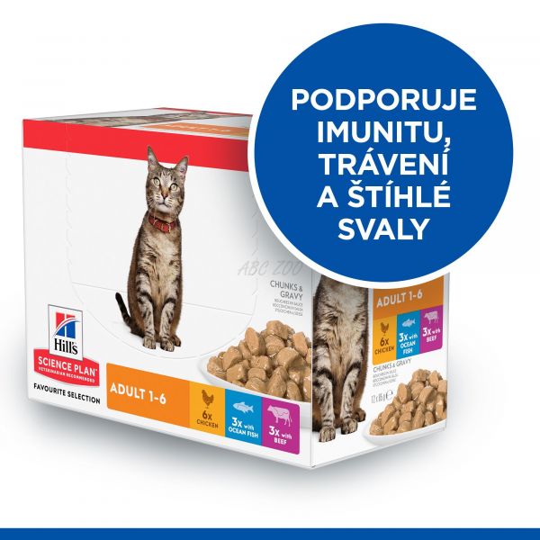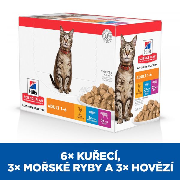 Hill's Science Plan kapsičky pro dospělé kočky kuře, hovězí a ryba 12 x 85 g