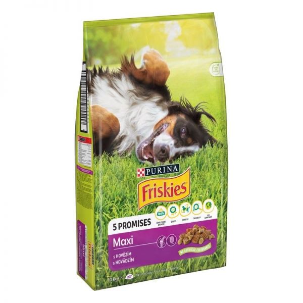 PURINA FRISKIES VITAFIT Maxi, chutnou recepturu s hovězím, v kombinaci s celozrnnými obilovinami, vitamíny skupiny B a omega-3 a 6 mastnými kyselinami. PURINA FRISKIES VITAFIT Maxi poskytuje 100% kompletní a vyváženou výživu včetně vitamínu D a minerálních látek pro silné kosti. Krmivo je tvořeno většími granulemi, které napomáhají správnému žvýkání a přispívají k udržení zdraví zubů.