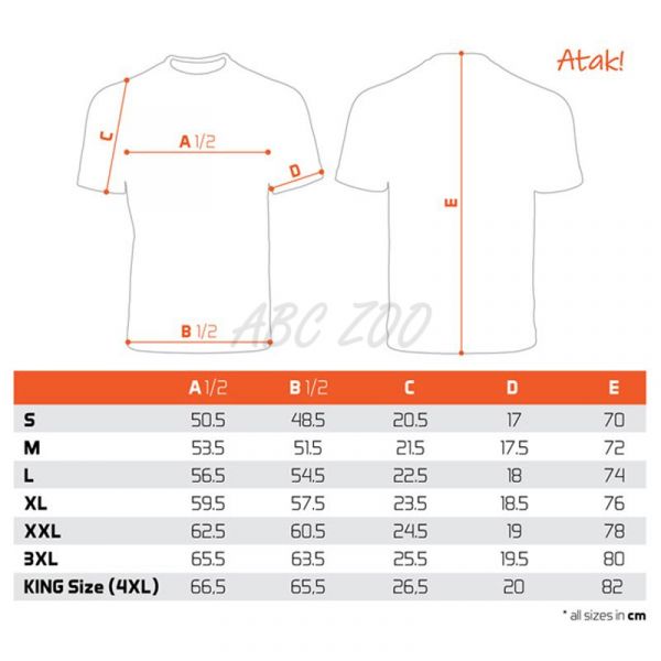 Samotné tričko je vysoké kvality, stejně jako použitý barevný tisk. Nabízíme je v široké škále velikostí od S až po KING SIZE (ekvivalent 4+XL, který je ve většině zemí označován jako XXXXXL). Model King size tedy hravě oblékne i ty nejstatnější rybáře o hmotnosti 135 kg+.