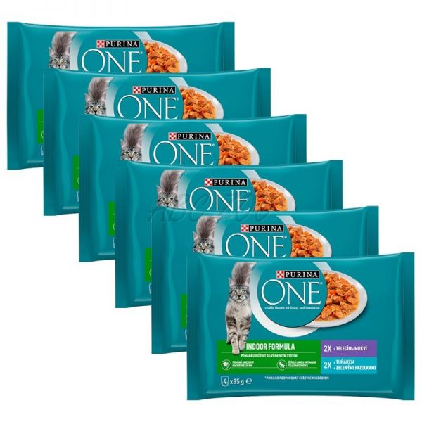 Purina ONE Indoor kapsičky pro kočky tuňák, telecí ve šťávě 24x85 g