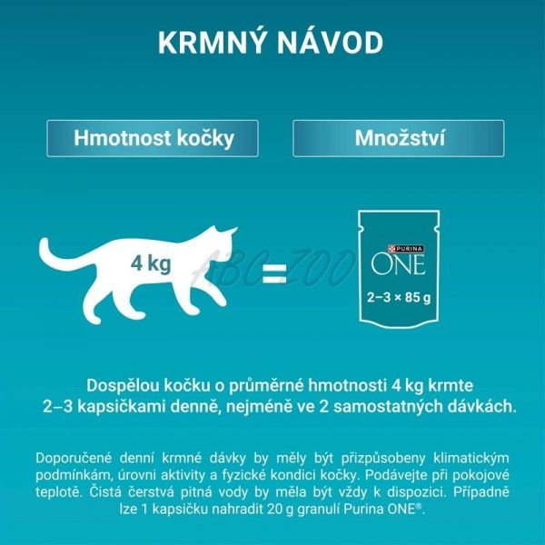 Kapsičky PURINA ONE jsou kompletním a vyváženým krmivem, speciálně vyvinutým veterináři a odborníky na výživu společnosti Purina. Představují ideální kombinaci kvalitní výživy a skvělé chuti. Můžete si tak být jisti, že si vaše kočka na kapsičkách PURINA ONE pochutná a dostane všechny potřebné živiny, aby zůstala zdravá dnes i zítra.