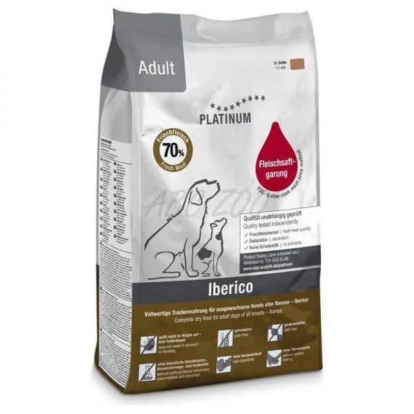 Složení: čerstvé vepřové maso (70 %, výhradně z iberského prasátka), brambory sušené, ryby sušené, jablečná dřeň sušená, živočišný tuk z lososa, olivový a lněný olej lisovaný za studena, zelenina (mrkev, rajče, vojtěška, brokolice), zelený čaj, extrakt z pomeranče a grepu, pivovarské kvasnice sušené, extrakt z mušle slávky zelenoústé, ostropestřec mariánský semeno, rozmarýn, fenykl semeno, smilax lékařský kořen sušený, celer, artyčoky, řeřicha, pampeliška, extrakt z heřmánku, chlorid draselný.
