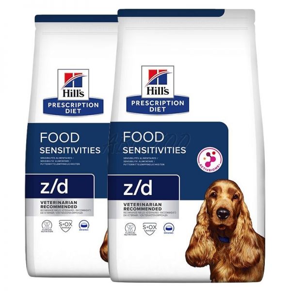Krmivo pro psy Hill's Prescription Diet z/d je kompletní dietetické krmivo používané pro snížení intolerance přísad a živin u dospělých psů. Toto dietetické krmivo obsahuje vybraný zdroj sacharidů a zdroj hydrolyzované bílkoviny.