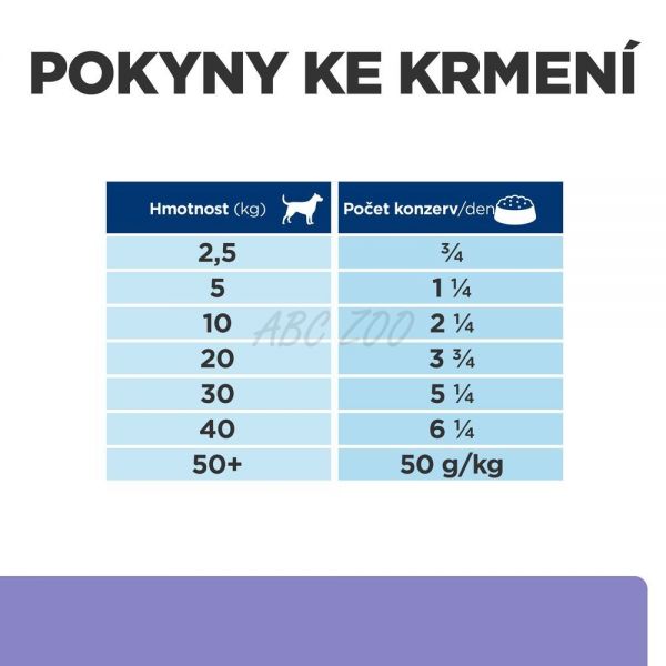 Krmte výhradně doporučeným krmivem PRESCRIPTION DIET. Před použitím požádejte svého veterináře o konkrétní pokyny ke krmení vašeho domácího mazlíčka. Kompletní pokyny ke krmení najdete v balení. Denní doporučení krmení jsou pouze vodítkem, jak začít. Pokud si nejste jisti, zeptejte se svého veterináře. Zajistěte stálý přístup k čerstvé vodě.