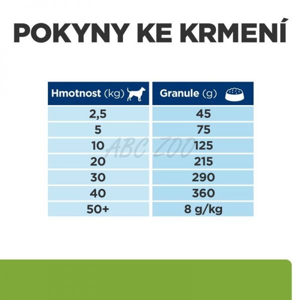 Podávejte výhradně doporučené krmivo Prescription Diet. Před použitím požádejte svého veterináře o konkrétní pokyny ke krmení Vašeho mazlíčka. Kompletní informace ke krmení naleznete na obalu. Denní doporučené dávky jsou pouze orientační hodnoty, ze kterých byste měli vycházet. Pokud si nejste jisti, poraďte se s veterinářem. Zajistěte stálý přístup k čerstvé vodě. Je toto krmivo pro vás nové? Po dobu minimálně 7 dnů přimíchávejte do stávajícího krmiva postupně nové a ubírejte stávající. Vždy zajistěte dostatek pitné vody! Výživové potřeby vašeho zvířete se během života mohou měnit. Při každé kontrole se ptejte svého veterináře.