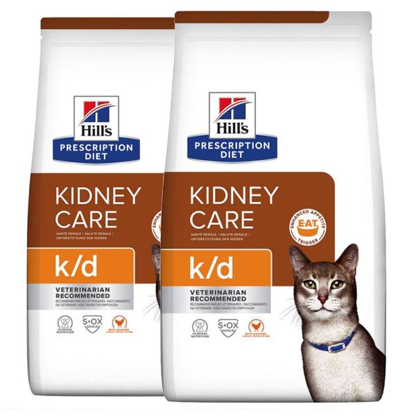 Když mají kočky poškozené ledvinové tkáně, ledviny nemohou fungovat tak dobře jako dříve. Stav nelze zvrátit, ale jeho progrese se může zpomalit. Dietetická krmiva pro onemocnění ledvin jsou navržena tak, aby pomáhala snižovat zatížení ledvin a umožňovala jim tak efektivnější fungování. U koček trpících sníženou funkcí ledvin může dojít ke ztrátě chuti k jídlu a může klesnout jejich příjem potravy. Toto suché krmivo je vyrobeno z kuřecího masa a má neodolatelnou chuť, kterou si vaše kočka oblíbí. Krmivo Prescription Diet k/d je ve skutečnosti klinicky ověřenou výživou pro zlepšení kvality a prodloužení života.