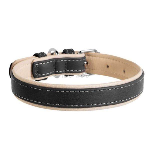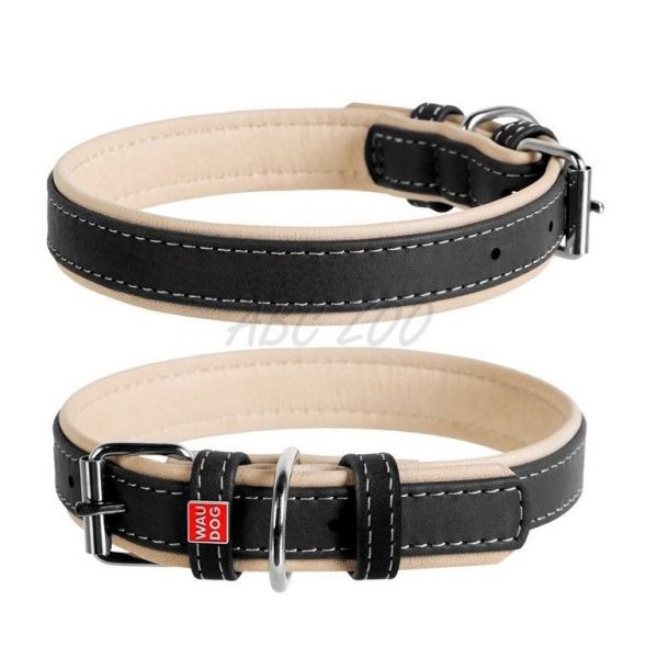 Kožený obojek WAU DOG Soft 57-71 cm, 35 mm černo-béžový