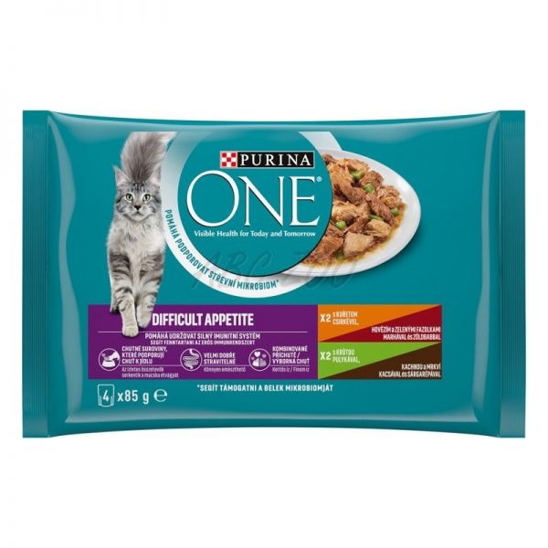 Purina ONE Difficult Appetite kapsičky pro kočky kuře, hovězí, krůta, kachna ve šťávě 24x85 g