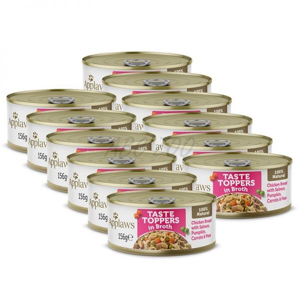 Konzerva APPLAWS dog kuřecí maso, losos a zelenina 12 x 156 g
