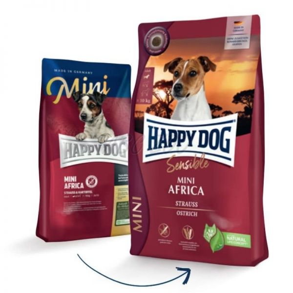 Toto krmivo je přizpůsobeno speciálním potřebám drobných plemen s citlivým trávením. Zvláštností tohoto krmiva je vysoký podíl pštrosího masa (18 %) kombinovaného s bramborami. Pštrosí maso je ideální pro citlivé, nebo alergické psy, neboť je velmi ojedinělým zdrojem proteinů. Brambory neobsahují lepek a proto jsou často doporučovány jako náhrada obilnin v případě jejich nesnášenlivosti. Receptura je obohacena o zdraví prospěšné omega 3 a omega 6 mastné kyseliny. Toto krmivo nahrazuje na trhu předcházející verzi granulí „Happy Dog Supreme My little Africa“.