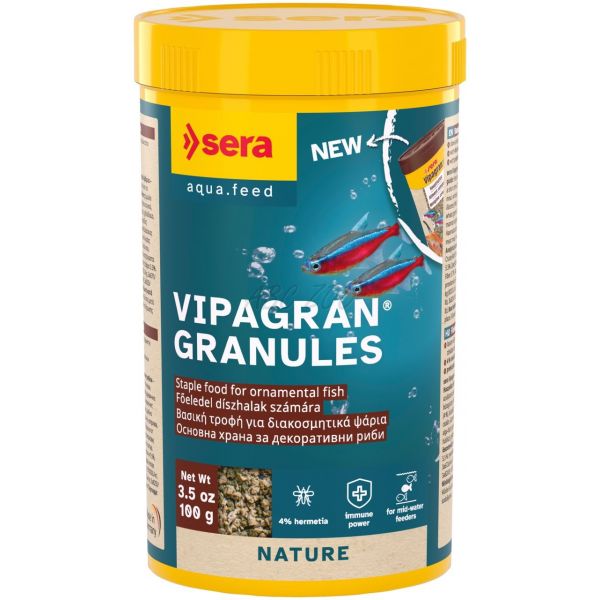 Složení: kukuřičný škrob, pšeničný lepek, rybí moučka, sušená celá vejce, Ca-kaseinát, hmyzí moučka (Hermetia illucens) (4 %), pšeničná mouka, rybí olej, pivovarské kvasnice, spirulina, pšeničné klíčky, lucerna, kopřiva, moučka z gammarusu, petržel, mannan-oligosacharidy (0,4 %), mořská řasa, paprika, řasa Haematococcus, špenát, mrkev, maso ze zelenoustej mušle, semena řeckého sena, fenykl, anýz, česnek.
