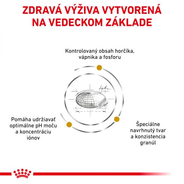 Onemocnění močových orgánů může u psů vést až ke vzniku bakteriálních zánětů močového měchýře a k tvorbě močových kamenů včetně struvitových či kalciumoxalátových. Veterinární dieta pro správnou funkci močového měchýře a močových trubic je navržena tak, aby pomohla rozpouštění močových kamenů, podpořila léčbu cystitidy a zabránila recidivě.